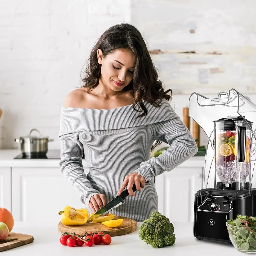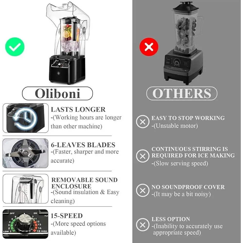 Commercial Blender 2200W Heavy Duty Smoothie Maker 15 Speed 6 Leaf Steel Blade Soundproof Cover Large Capacity Easy Clean