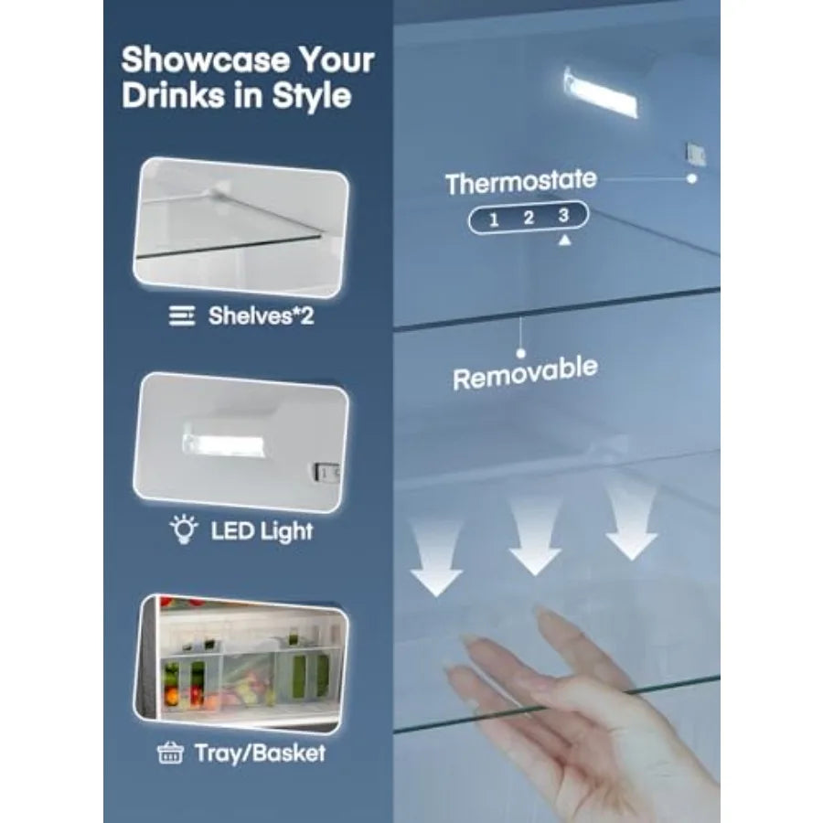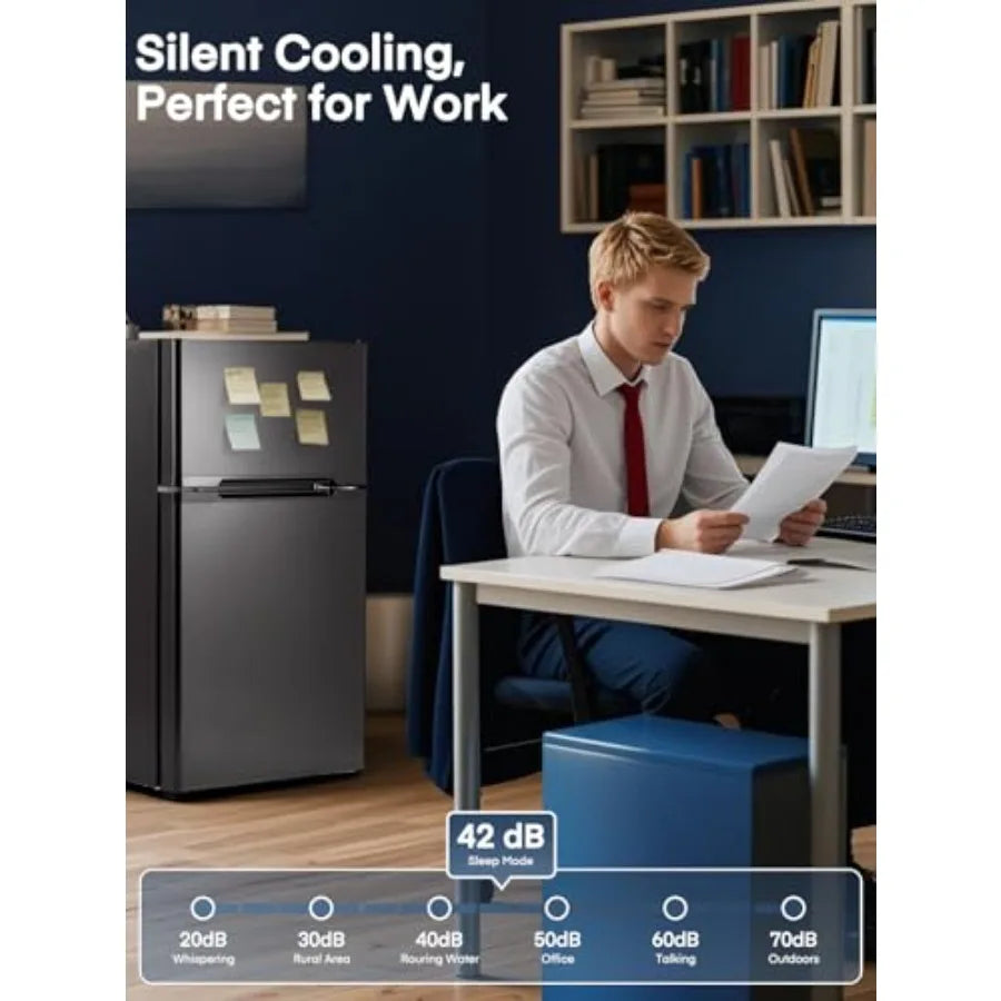 Compact 3.1 Cu.Ft DoubleDoor Mini Fridge with Freezer and Ice Tray for Bedroom Dorm or Office Removable Shelves and Adjustable