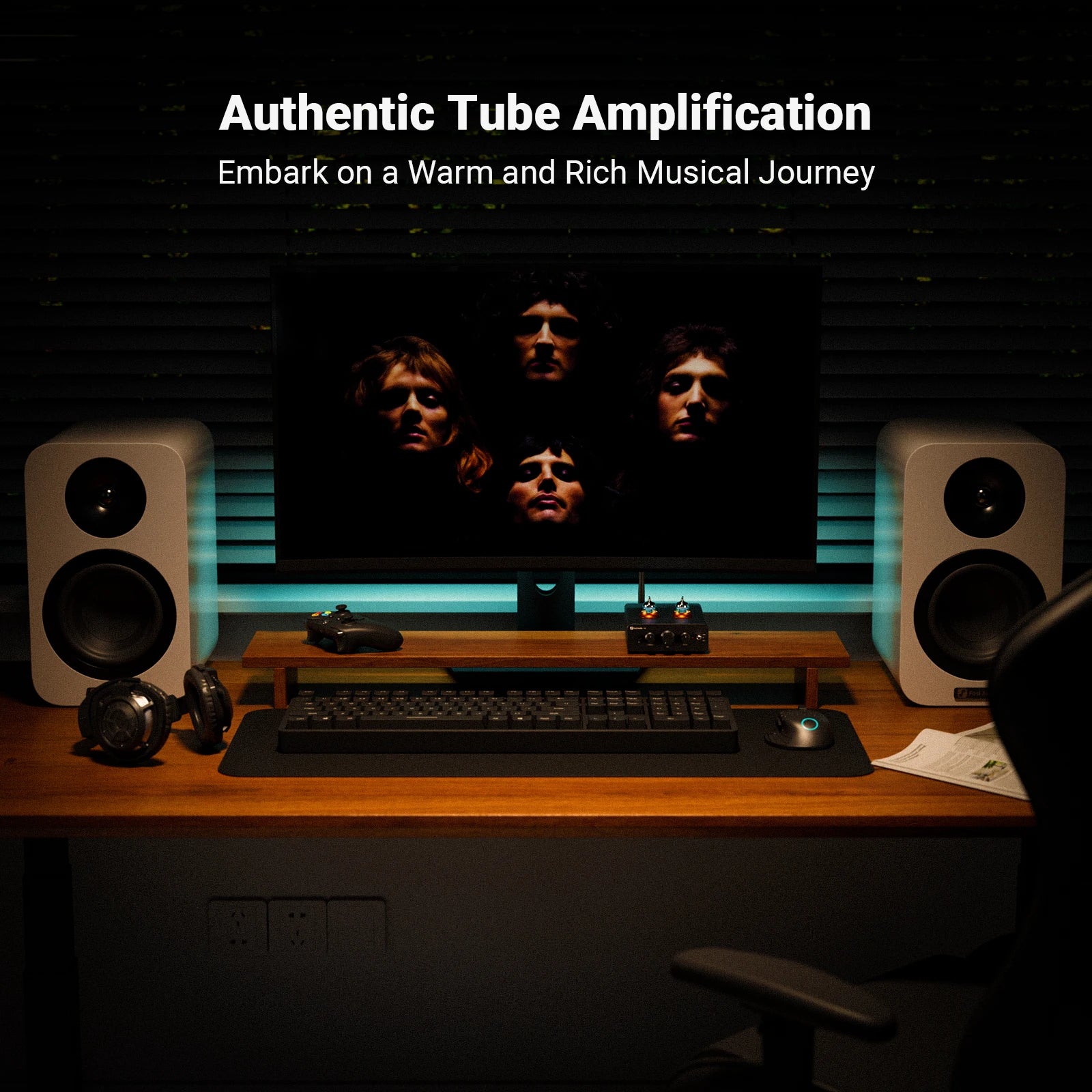 True Tube Amplification: The preamp circuit elevates the voltage to 54V, ensuring the tubes work to their full potential, delivering a warm and rich experience. The unique preamplification technology delivers pure audio signals, faithfully reproducing crisp high tones, full midrange richness, and deep, rhythmic bass.