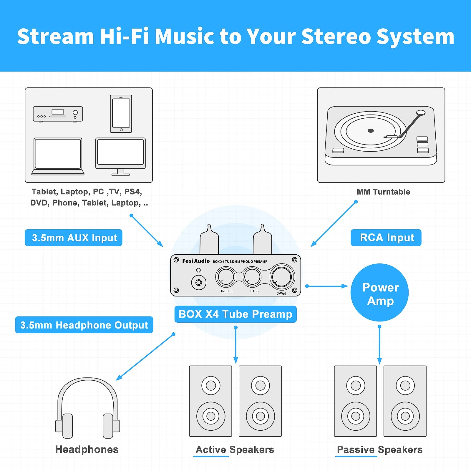 Fosi Audio Phono Preamp for Turntable Phonograph Preamplifier With 5725W Vacuum Tube Amplifier HiFi BOX X4
