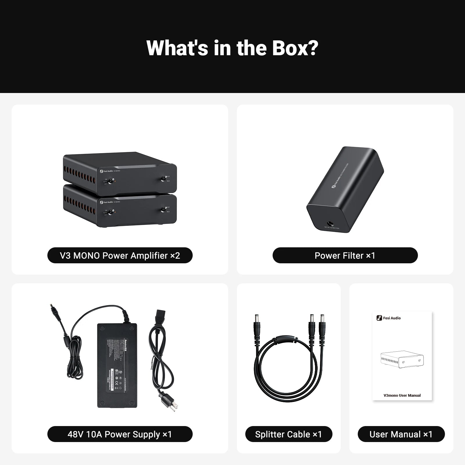 ·A Detail-oriented Audio Amplifier: The V3 mono amp features an auto turn ON/OFF function for user convenience and efficient energy management. Its advanced heat dissipation design ensures optimal performance and longevity. The amp supports a power range of DC 32-48V and comes with a 48V/5A power supply. When using a 48V/10A power supply can simultaneously drive two V3 MONO units, to expand your HIFI system.