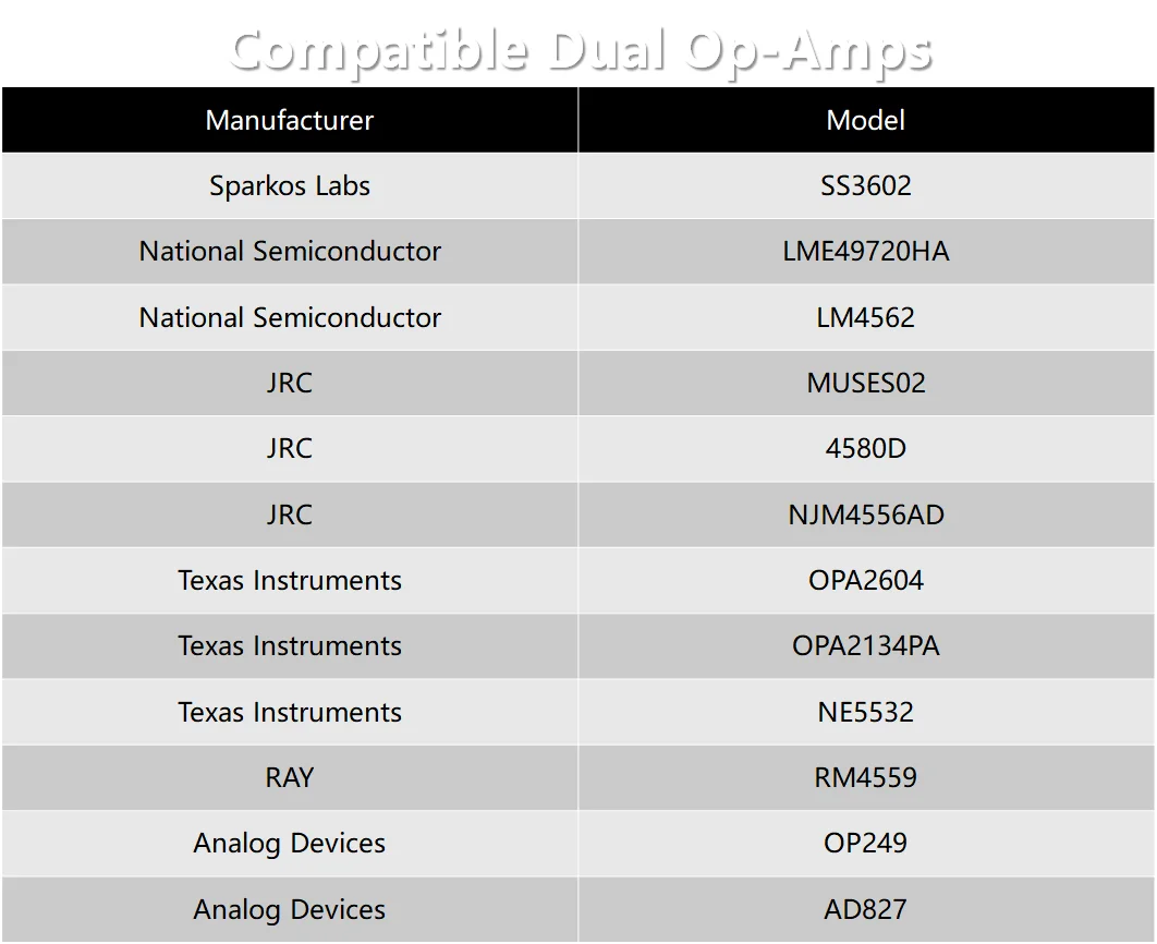 • Enhanced Scalable Fun: Personalize your audio experience with the op-amp rolling feature! The ZA3 stocks five swappable op-amps for left and right channel outputs, balanced input, and subwoofer output. Experiment with compatible DIP8 dual op-amps such as Sparkos SS3602, MUSES02, OPA2604, OPA2134PA, OP249, AD827, RM4558, LM4562, LME49720HA, etc. to fine-tune your sound to perfection.