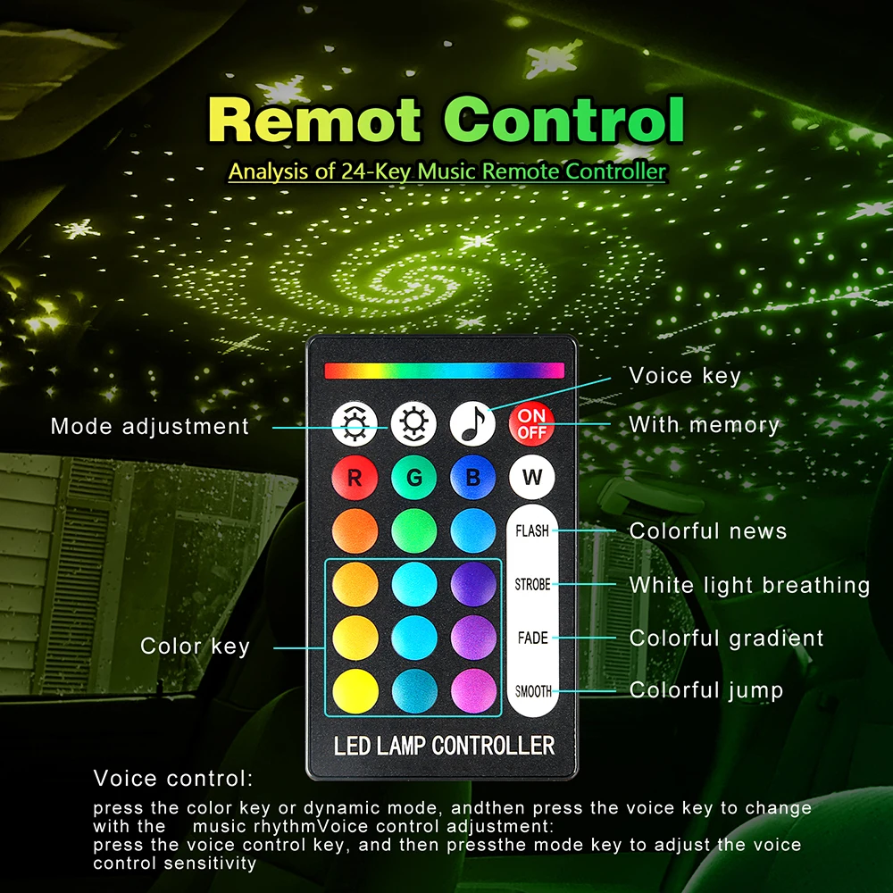 3. DC12V, suitable for cars, with music mode, 24 button multifunction remote control, easy to use.