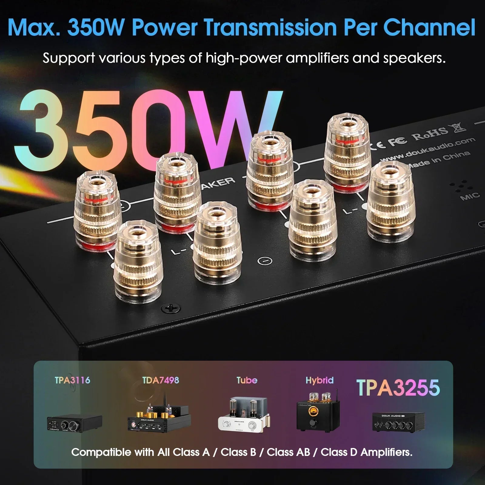 Max. 350W Power Transmission and Super Compatibility: With the growing popularity of high-power amplifiers, the power requirements for switchers have also increased. With a maximum pass-through of 350W, the VU3Pro supports various types of high-power digital and tube amplifiers (BTL, Class A, Class B, Class AB, Class D, etc.), including 300W TPA3255 amps and floorstanding speakers.