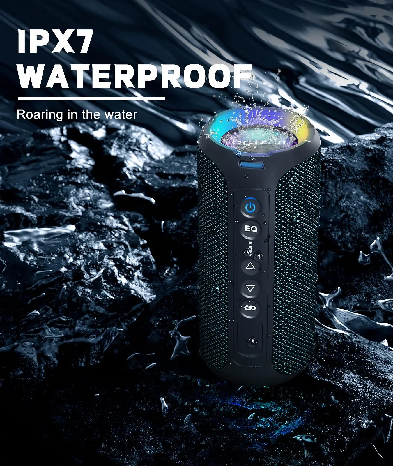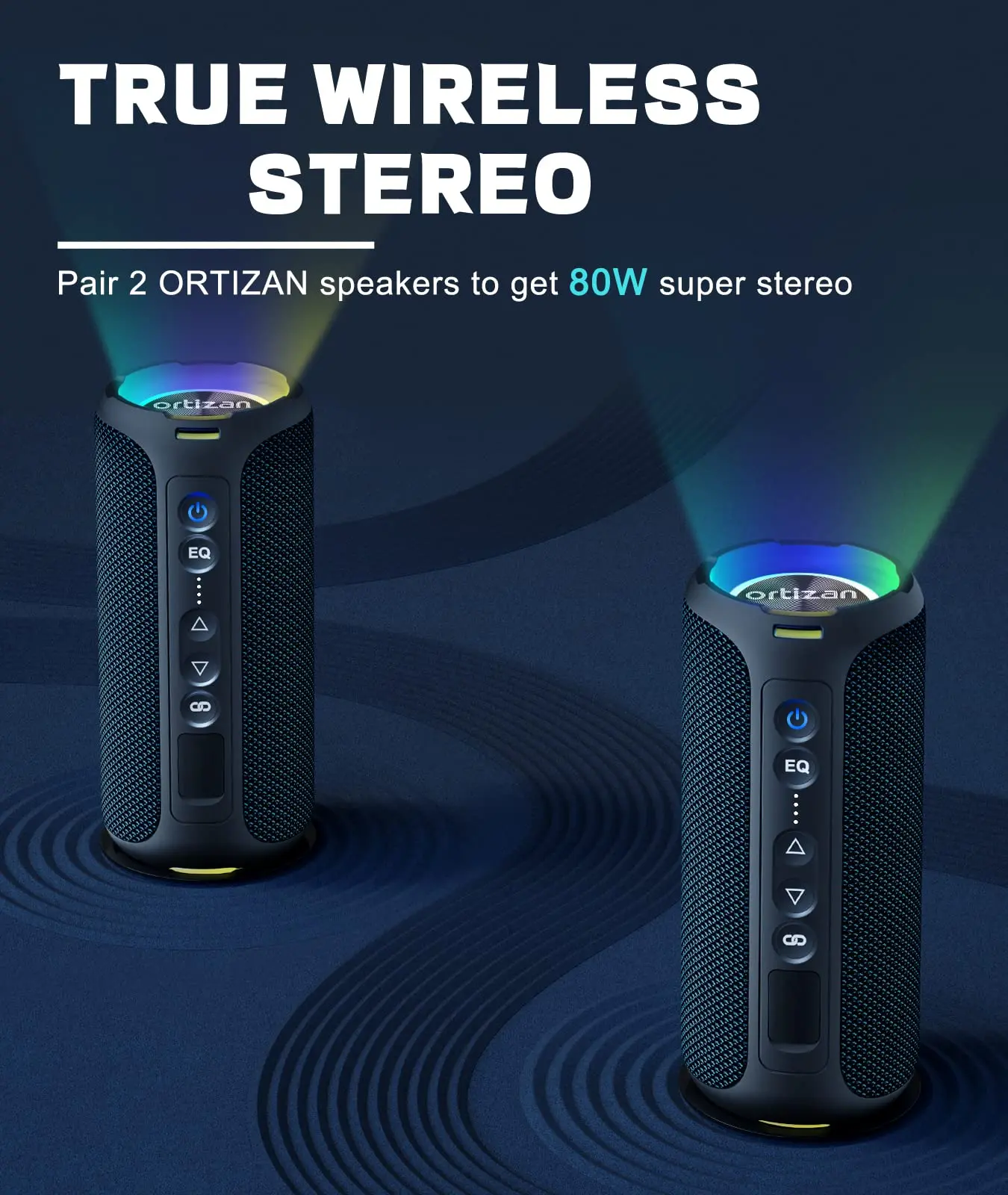 Ortizan 40W Loud Sound Speakers - IPX7 Waterproof, Portable Wireless Stereo Speaker, Dual Pairing, Deep Bass, LED Light